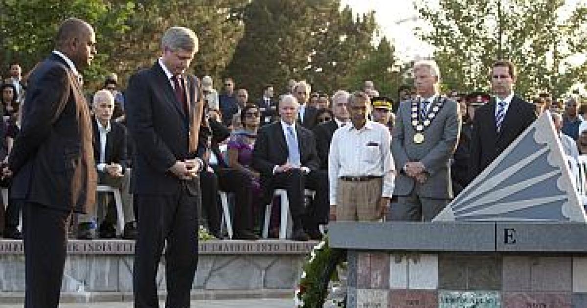 India, Joseph Cairn, leaders of the Opposition parties and others. At the outset, Harper said emphatically 'this atrocity was conceived in Canada, executed in Canada, by Canadian citizens, and its victims were themselves mostly citizens of Canada. 'We wish this realization had gained common acceptance earlier,' Harper noted.