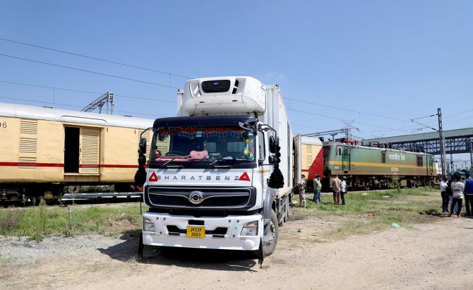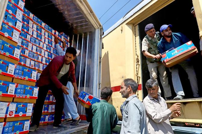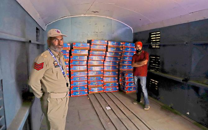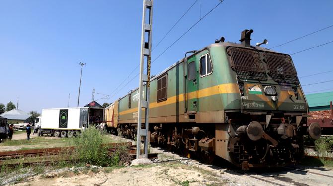 IMAGE: The special train which will transport the apples. Photographs: Umar Ganie for Rediff