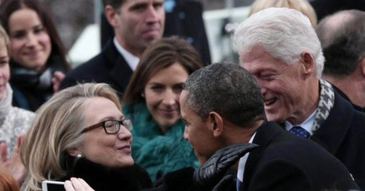 Image: US President Barack Obama with Hillary Clinton and former president Bill Clinton in Washington, DC. Photograph: Win McNamee/Reuters.