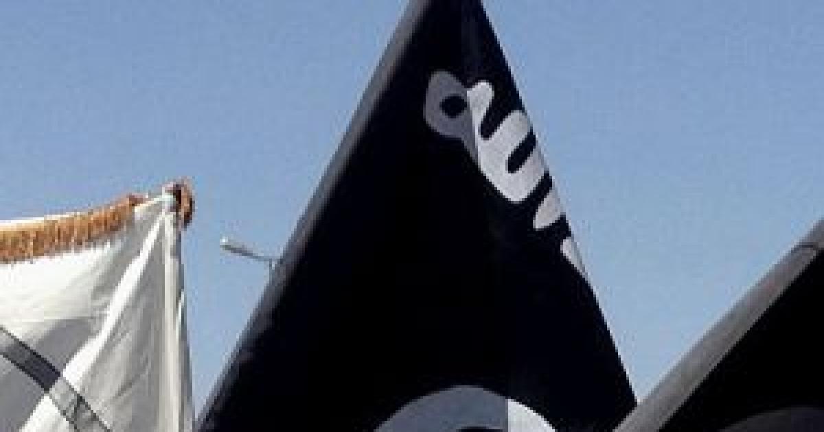 A group of youth, with faces covered, carried a black banner resembling Islamic State flag as they marched from Jamia Masjid towards Nowhatta chowk in downtown Srinagar soon after the Friday prayers, official sources said.