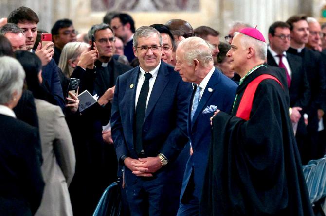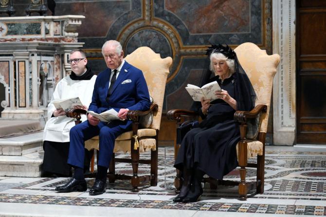 IMAGE: King Charles visits the Basilica of St Paul's Outside the Walls, during his first State visit to the Holy See since Pope Leo XIV's election. Photograph: Phil Noble/Reuters