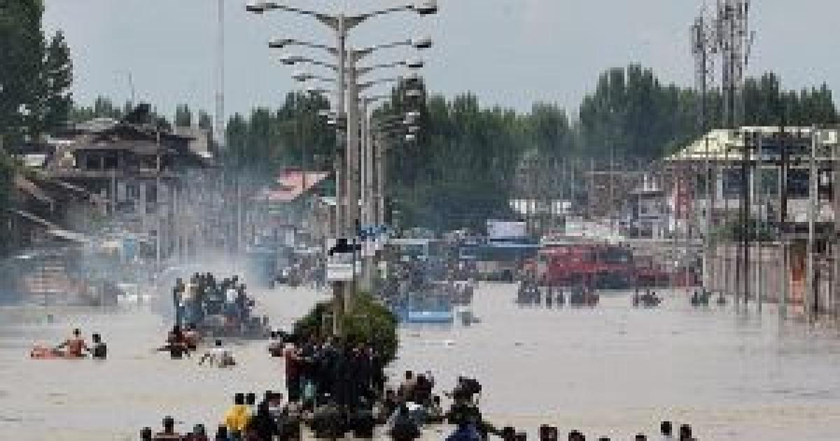 Image: People wade through flood water in Srinagar. Photograph: S Irfan/PTI Photo