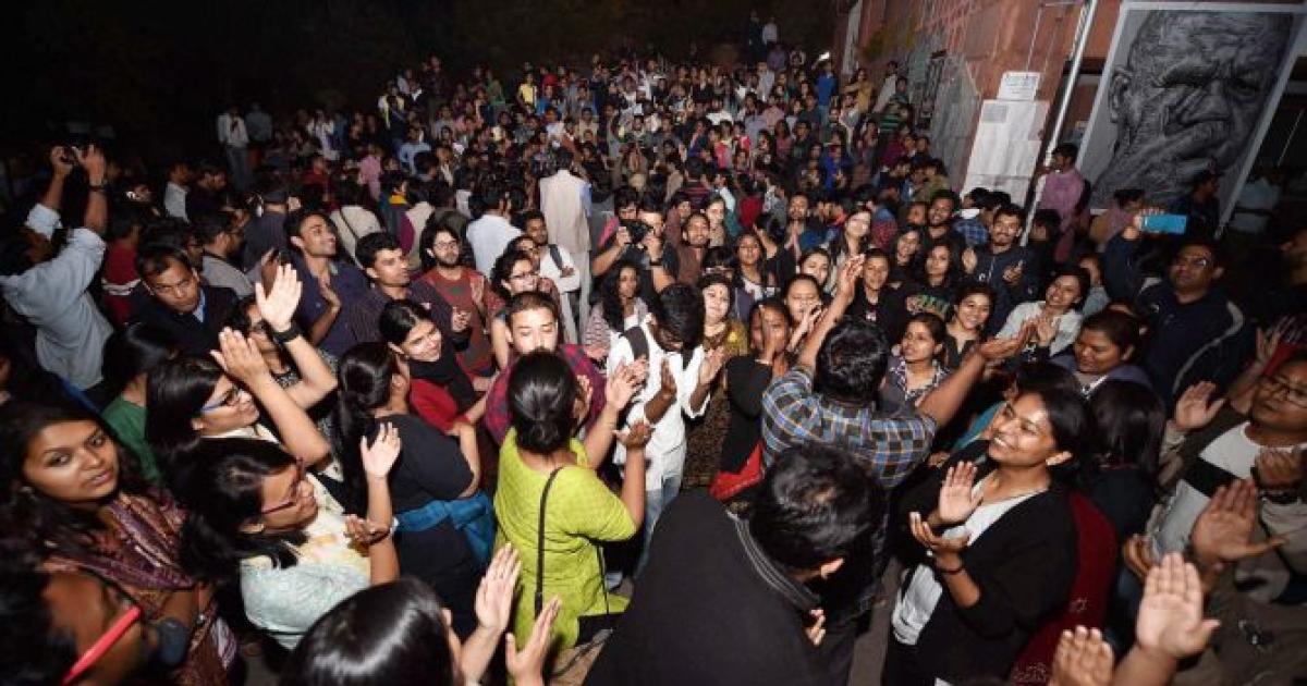 Shouting ‘victory’ slogans for Kanhaiya, students later marched from Sabarmati Dhaba, during the night hours.