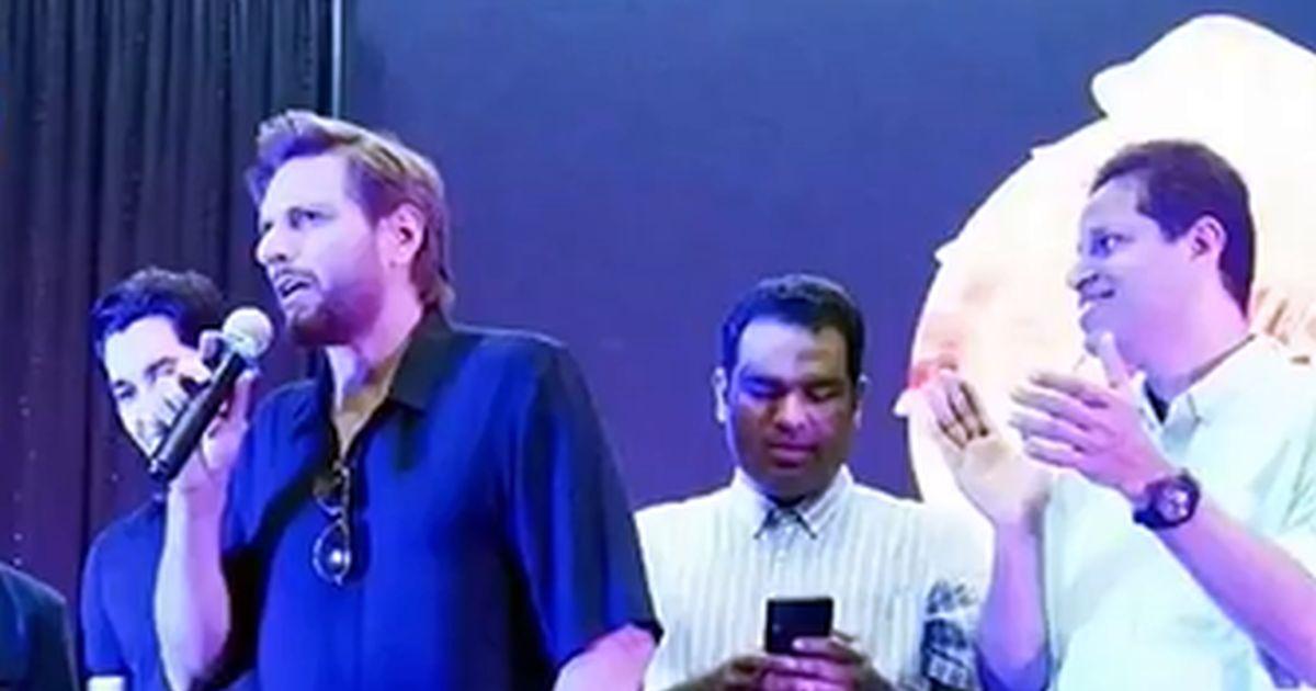 In the video, it can be seen that the crowd cheering Afridi and chanting his nickname "boom boom" when he addressed the gathering. In his brief address, the cricketer was seen praising Kerala and its cuisines.