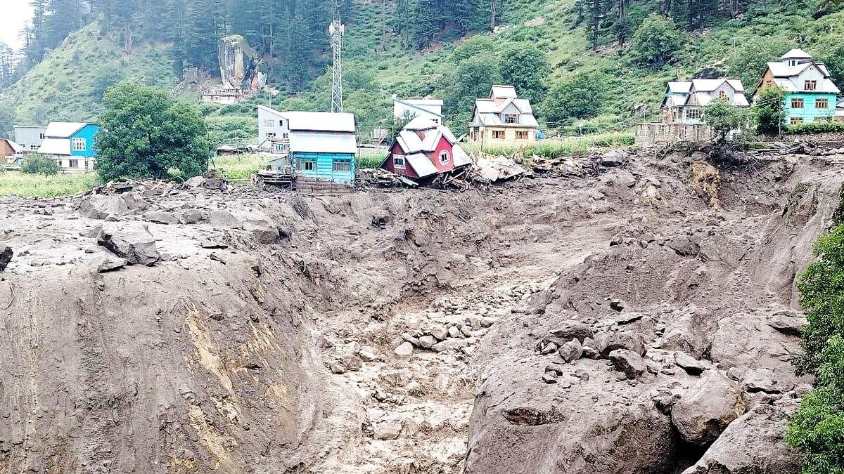 Vehicles lay piled up amid heaps of debris and uprooted trees brought down by the flash floods following the cloudburst, painting a scene of devastation, officials said.