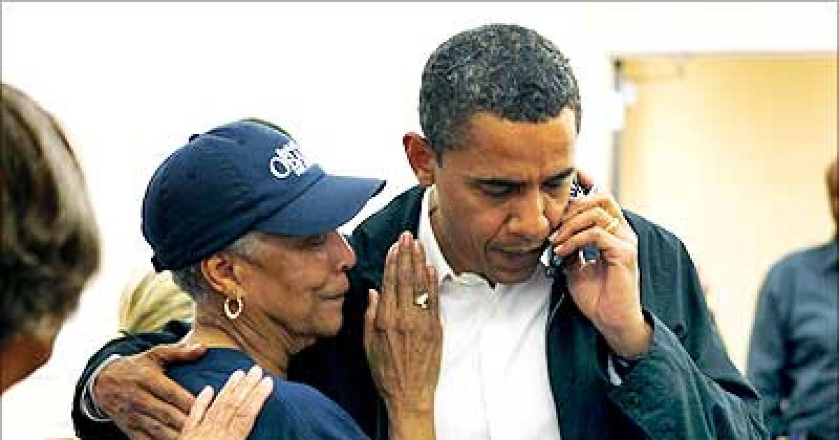 Image: Alverna Bracy, 76, cries leaning on the shoulder of Obama after the death of Obama's grandmother.