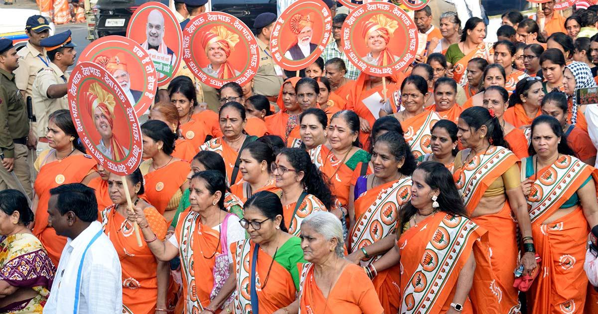 IMAGE: Mahayuti supporters from across the state traveled to Mumbai for the swearing-in ceremony, here and below. Photograph: Sahil Salvi for Rediff.com