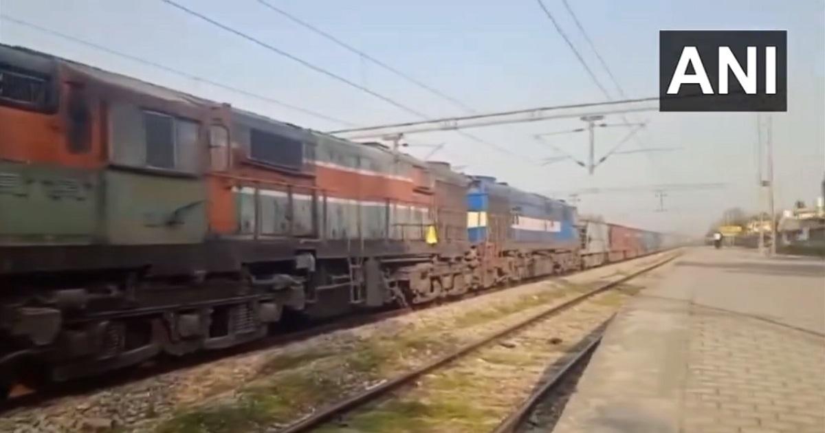 The 53-wagon train loaded with chip stones was on its way to Punjab from Jammu, the officials said.