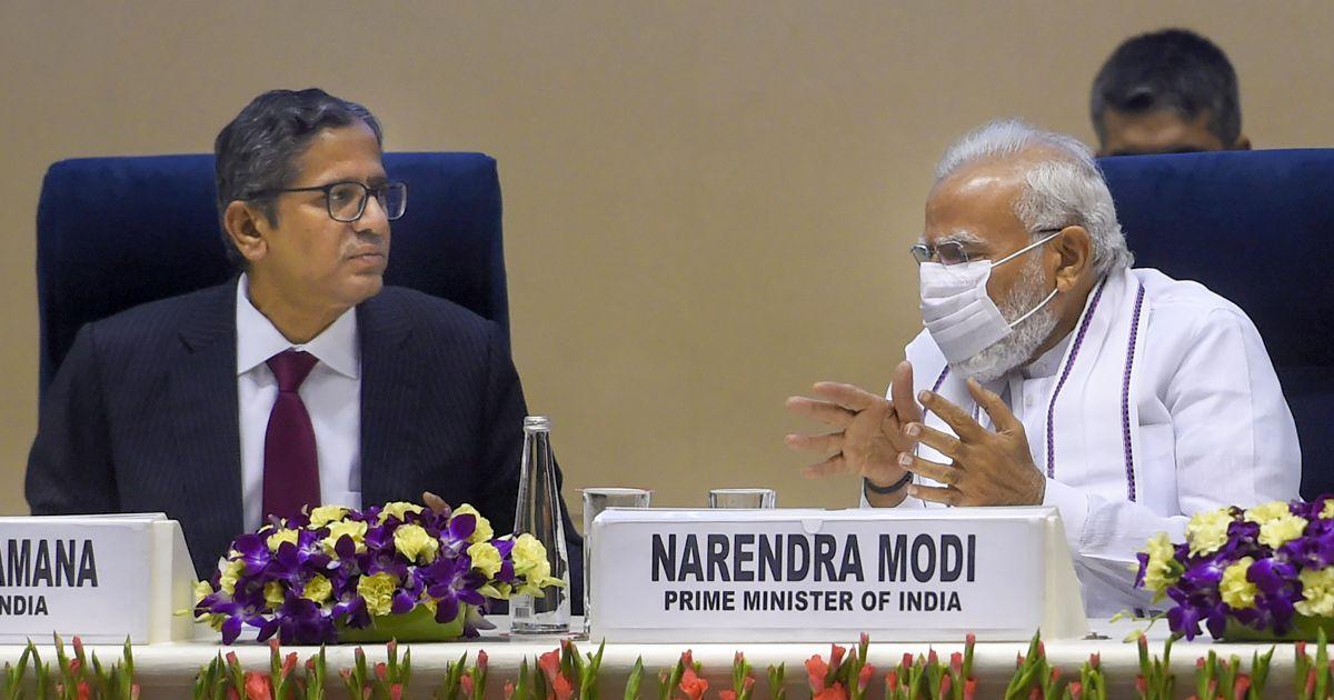 Before the prime minister spoke, the CJI said there was a need for the legal system to introduce local languages in courts.