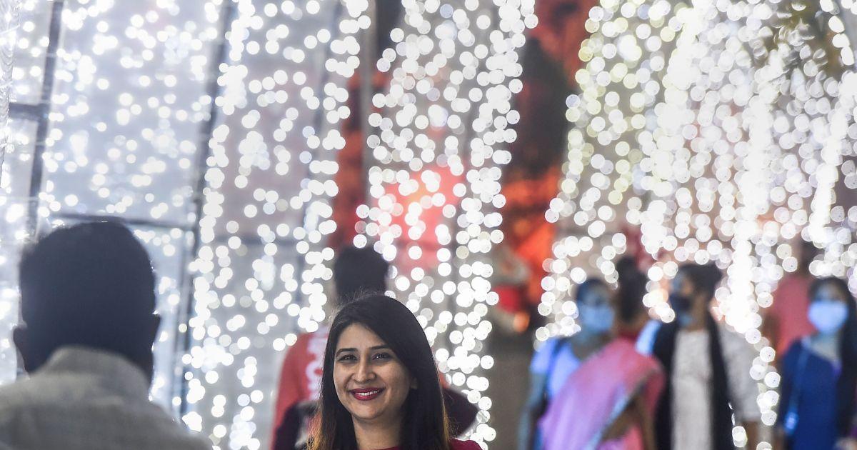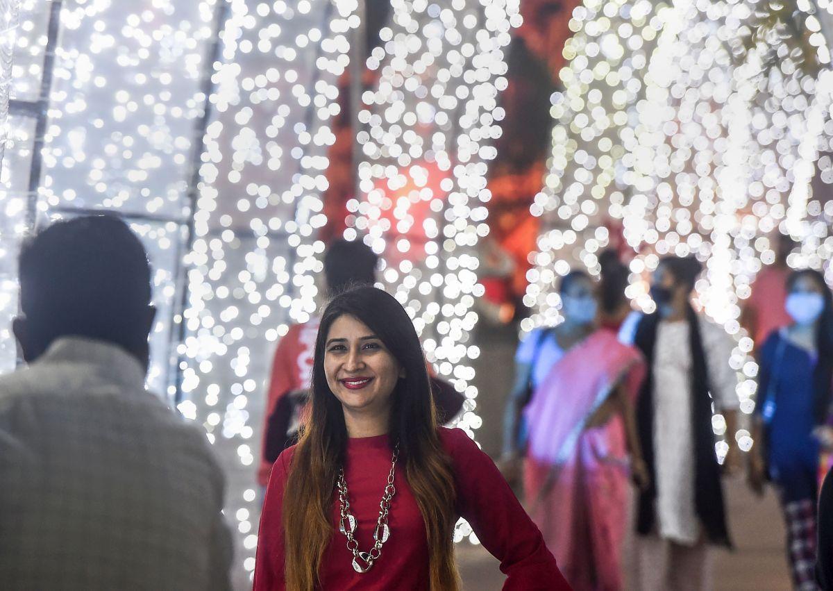 IMAGE: People visit a market in Bandra, Mumbai, on Friday, December 24, 2021. Photograph: Kunal Patil/PTI Photo