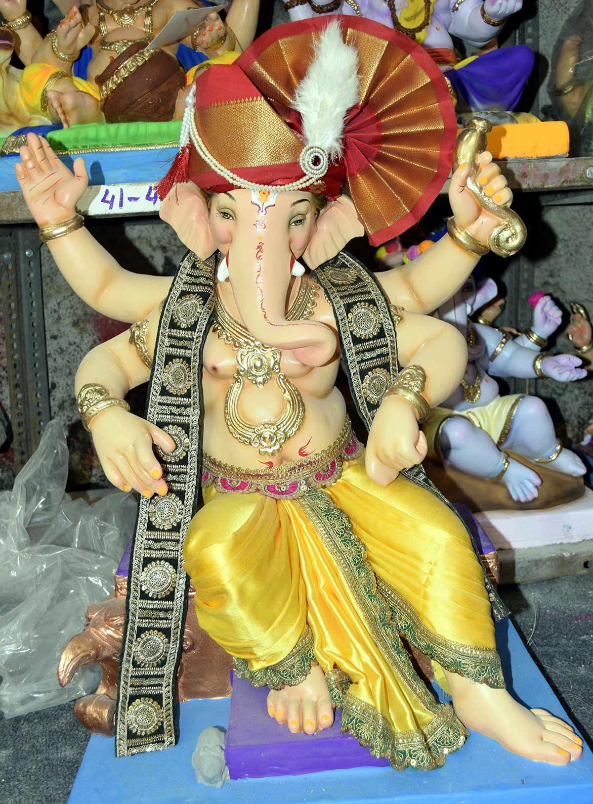The festival is marked by the installation of beautifully crafted idols of the deity, both in private homes and in large, decorative community pandals.