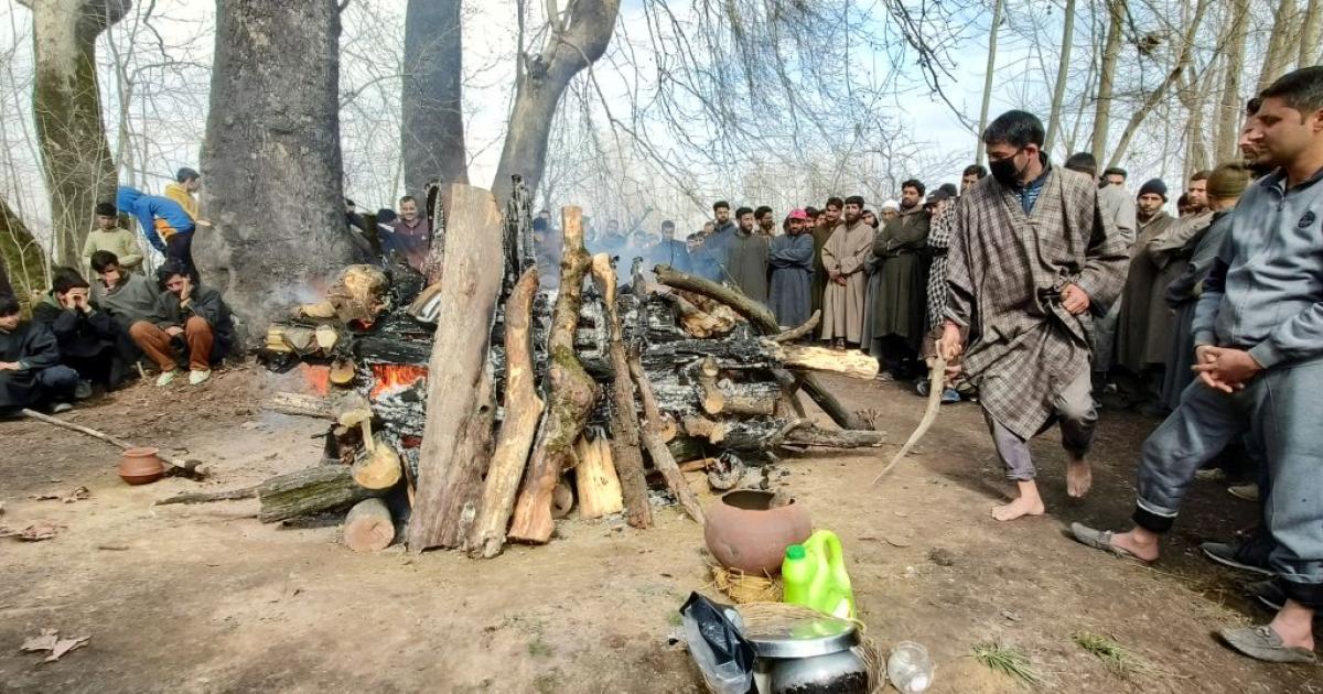 A day after he was shot dead by terrorists, Kashmiri Pandit bank guard Sanjay Sharma was cremated in his native village in Jammu and Kashmir's Pulwama district on Monday, with his Muslim neighbours lending a helping hand to his grief-stricken family.