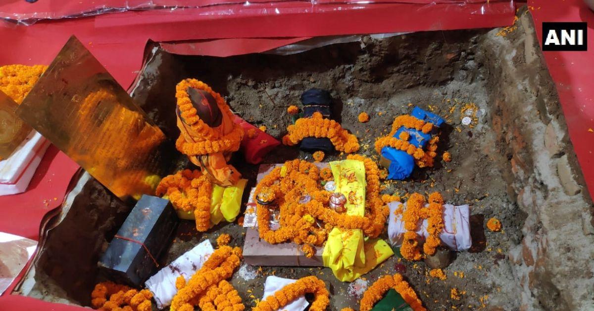 Nine bricks were laid down as part of the 'bhoomi pujan' at the site for Ram Janmabhoomi temple in Ayodhya on Wednesday.