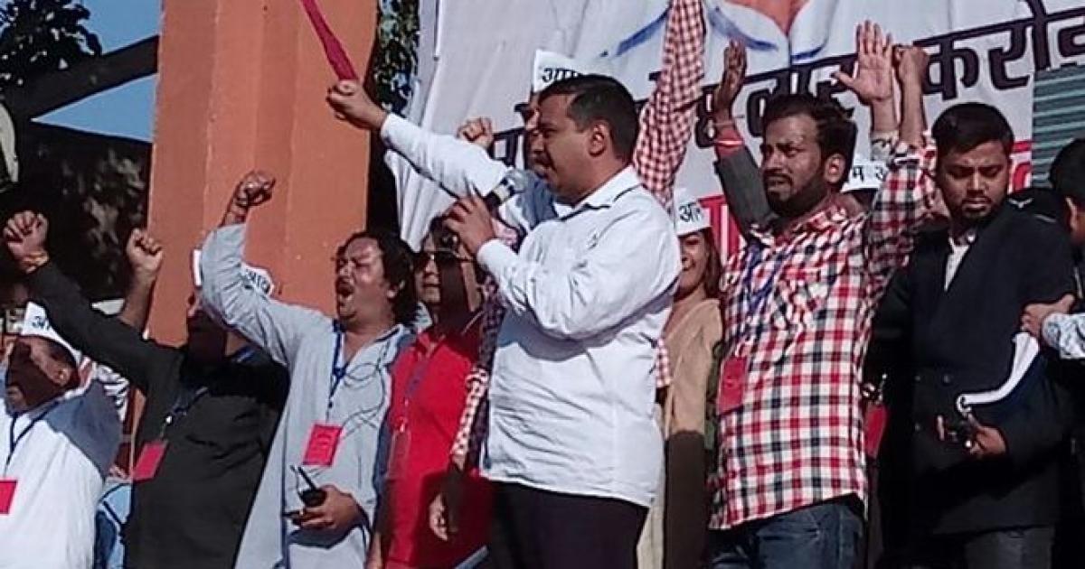 IMAGE: Delhi Chief Minister Arvind Kejriwal addresses a rally in Jaipur on Friday. Photograph: @AamAadmiParty/Twitter