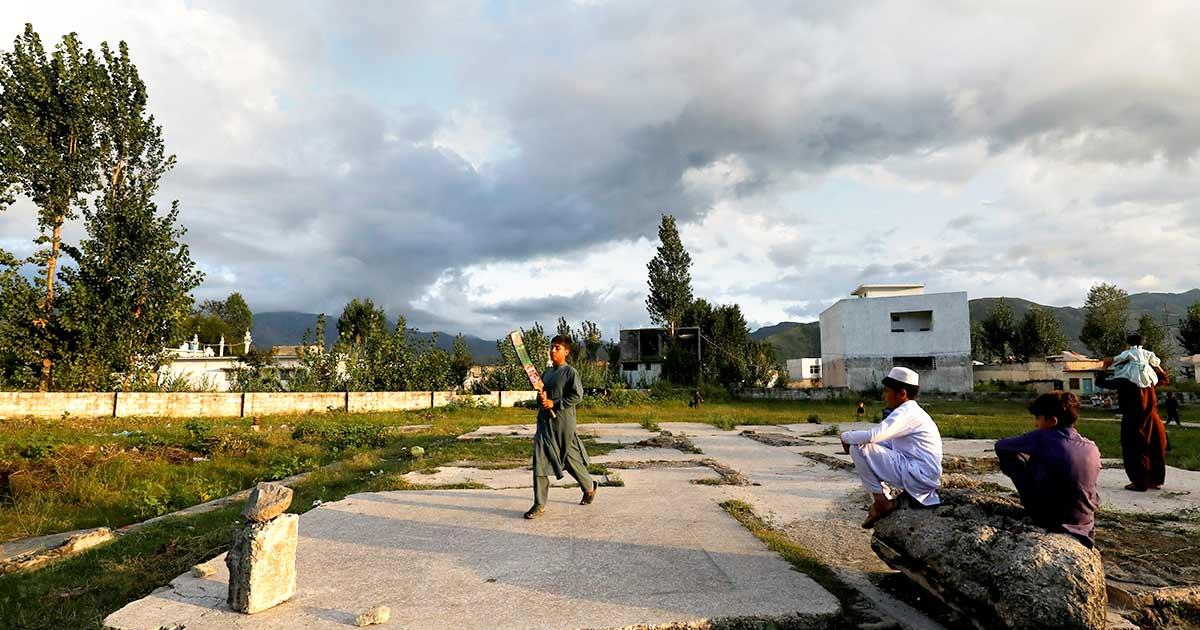 IMAGE: Children play cricket at Osama bin Laden's demolished former compound in Abbottabad, September 11, 2021. All Photographs: Akhtar Soomro/Reuters