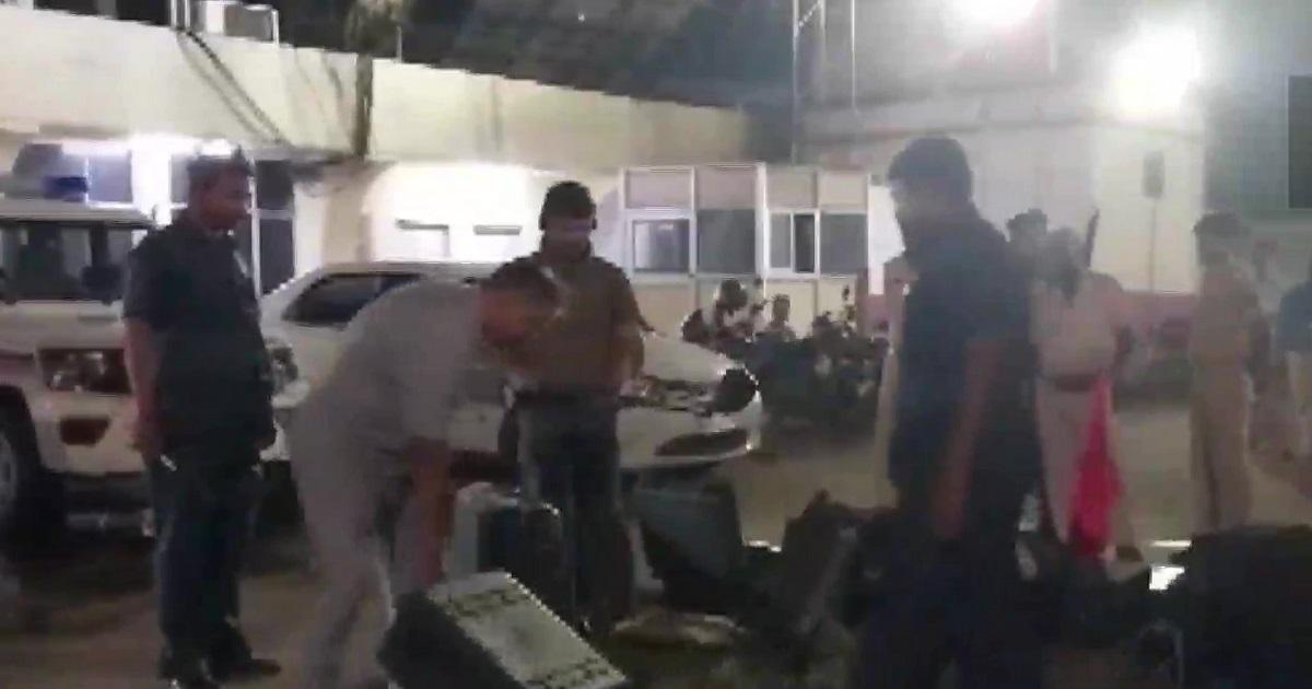 IMAGE: Police and bomb disposal squad inspect luggage after a hoax bomb threat by a passenger at the airport in Patna, July 21, 2022. Photograph: ANI Photo