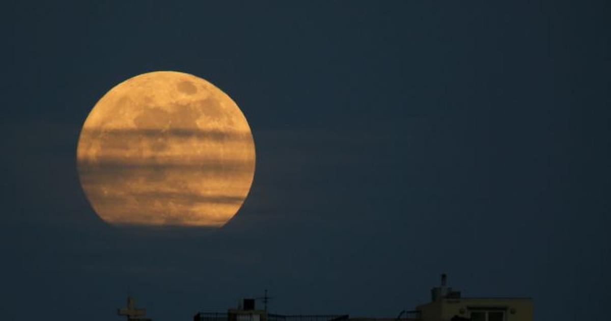 A 'supermoon' full moon is partly obscured by clouds in Pieta, Malta. Photograph: Darrin Zammit Lupi/Reuters