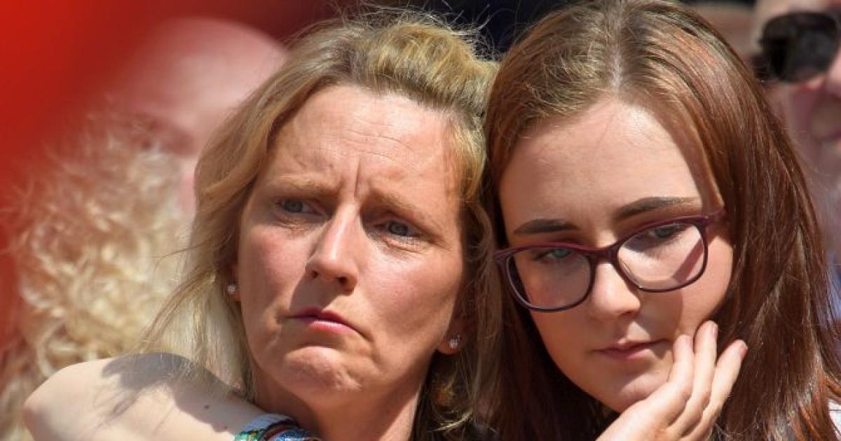 Women wept as they collected to pay tribute to the young lives that were lost when a suicide bomber blew himself up at the Manchester Arena during an Ariana Grande concert. Photograph: Stefan Wermuth/Reuters
