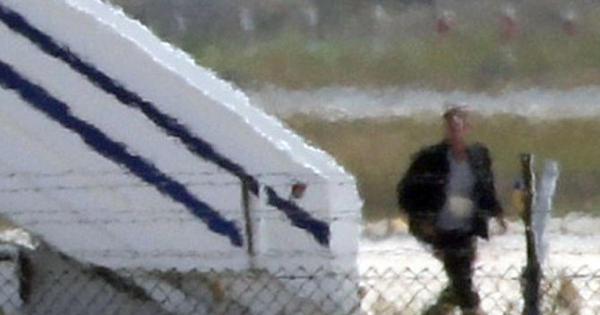 Image: A man thought to be the hijacker leaves the hijacked Egyptair Airbus A320 at Larnaca Airport in Larnaca, Cyprus. Photograph: Yiannis Kourtoglou/Reuters