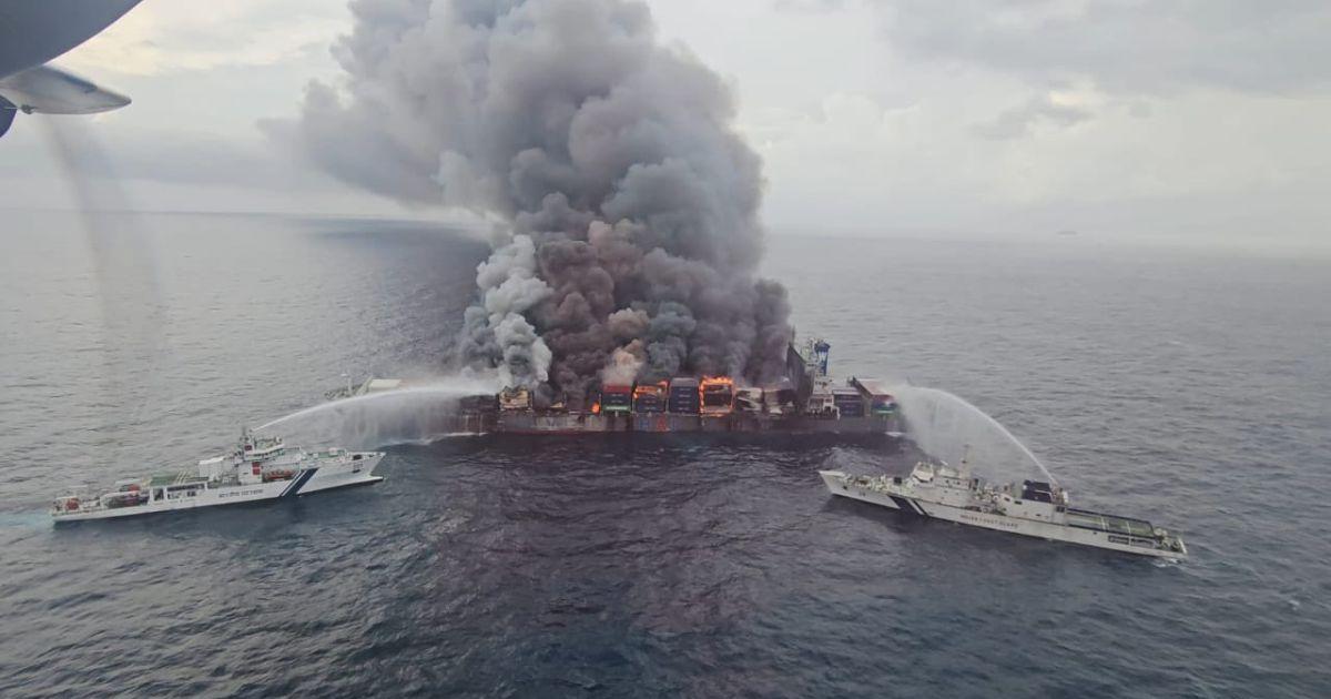 The forward bay fire has been brought under control, but thick smoke continues to rise from the vessel. The ship is listing approximately 10 to 15 degrees to port, and more containers have reportedly fallen overboard, they said.