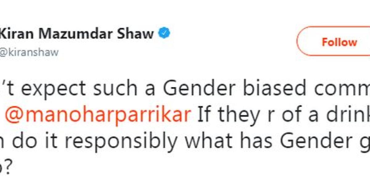 However, many on social media criticised the former defence minister for his biased remark, questioning him on what gender has got to do with drinking if an individual is an adult and drinks responsibly.