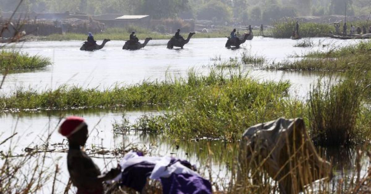 Image: Men on camels cross the water as a woman washes clothes in Lake Chad in Ngouboua. Refugees fleeing attacks by Islamist militant group Boko Haram continued to cross the border into neighbouring Chad. Photograph: Emmanuel Braun/Reuters