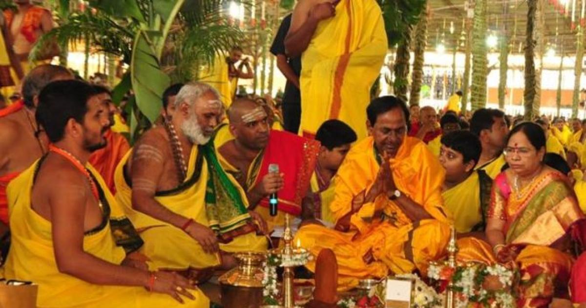 The ritual is reportedly being organised at a whopping Rs 7 crore at the chief minister’s farmhouse in Erravelli village in Medak district. KCR has roped in 1,100 priests from seven states to chant the mantras and perform the prayers at the five-day ritual, which began on December 23.