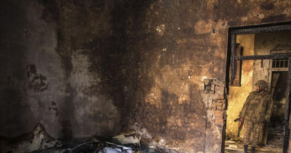 The burnt insides of a classroom of the Army Public School, which was attacked by Taliban terrorists on Tuesday. The school is now a horrifying reminder of the attacks in which the terrorists killed 132 children. This is one of the spots where one of the explosions took place. Photograph: Zohra Bensemra