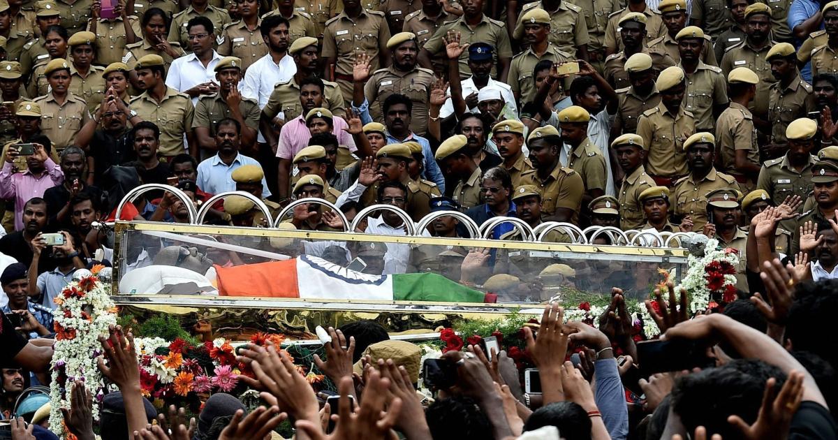 The country's high and mighty descended on the city to pay their last respects to the 'Thalaivar' (the leader), school dropout, who left an indelible imprint on the state's public life over decades through his literary, cinematic and political achievements.