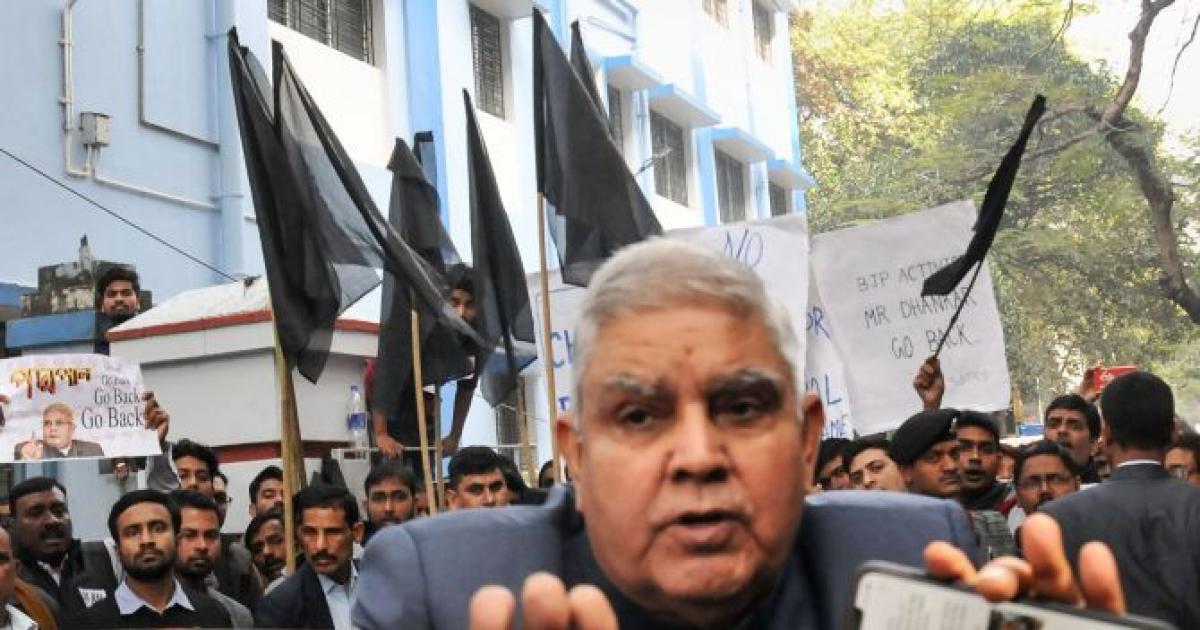 Protesters of the Trinamool Congress Employees' Union showed black flags to Dhankhar, who is the chancellor of the varsity, and blocked his car at gate number 5 of the campus at 10.30 am on Tuesday.