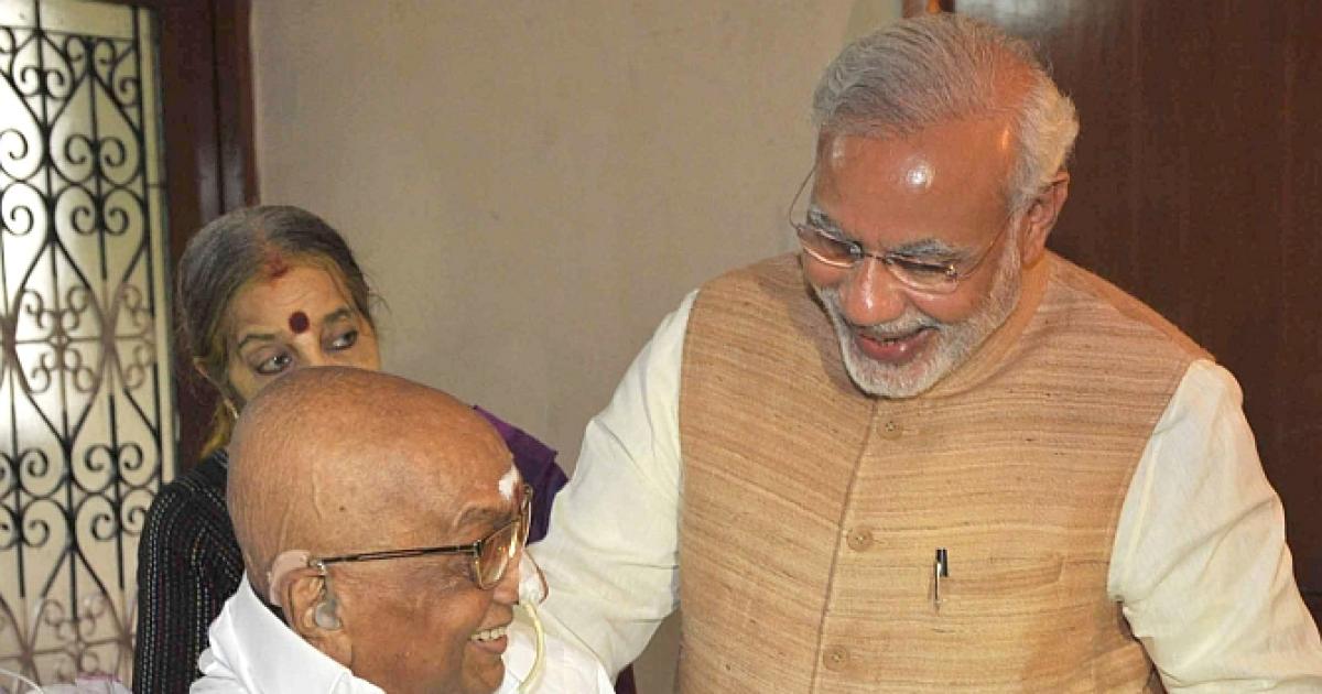 File photo: Prime Minister Narendra Modi meeting Cho Ramaswamy, in Chennai, Tamil Nadu on August 7, 2015. Photograph: Press Information Bureau