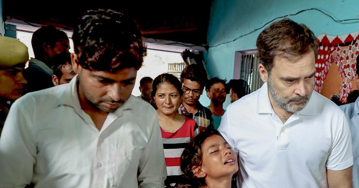 Leader of the Opposition in the Lok Sabha Rahul Gandhi met family members of the tragic Hathras stampede at Pilakhna in Aligarh on Friday, July 5, 2024.