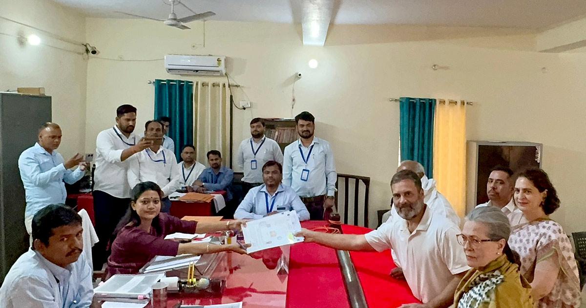 He was accompanied by Congress leaders Mallikarjun Kharge, Sonia Gandhi and Priyanka Gandhi Vadra as he filed his papers around 2 pm on the last day for filing nominations for the May 20 phase of polling.