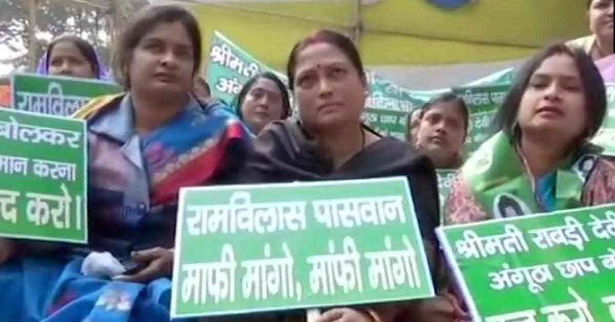 She was joined by women RJD activists, who carried placards and raised slogans demanding that the Union minister “apologise” and “take his words back”.