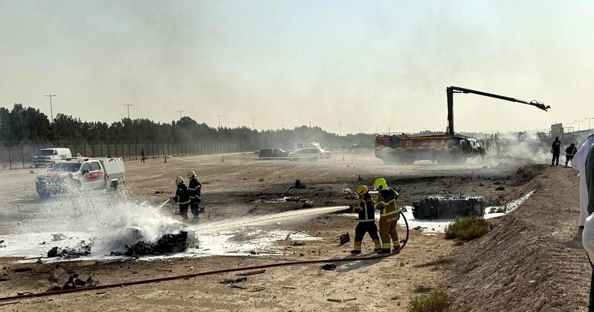Black smoke billowed over the Al Maktoum International Airport at Dubai World Central, as horrified spectators, including women and children, seated at a grandstand area behind a fenced airstrip, watched in shock.
