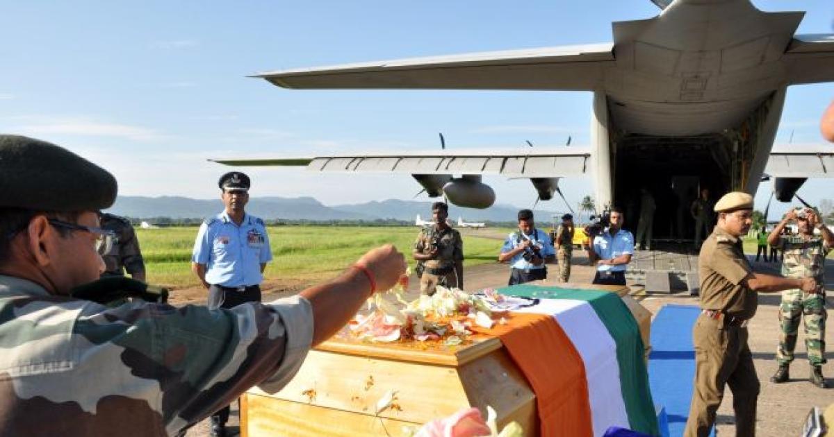 Image: Tributes being paid to former President Abdul Kalam at Guwahati airport. Photograph: Rediff.com
