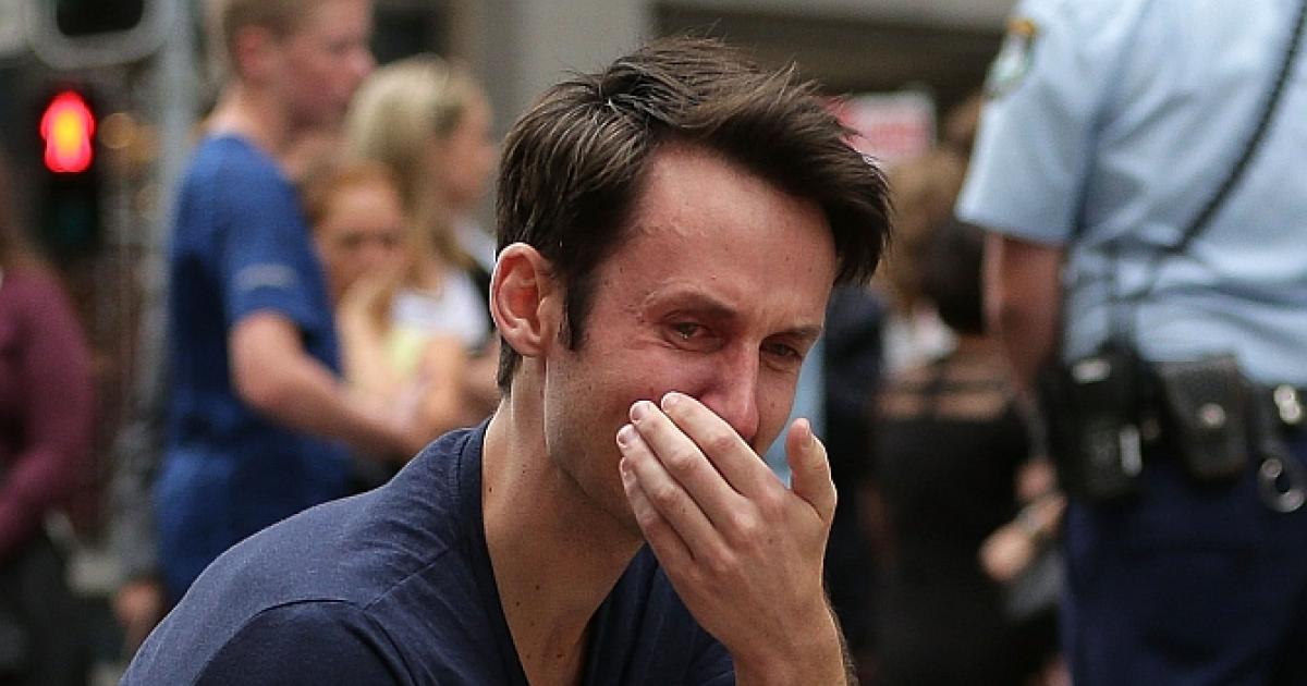 Image: A man cries as he pays his respect at Martin Place in Sydney. Photograph:  Mark Metcalfe/Getty Images