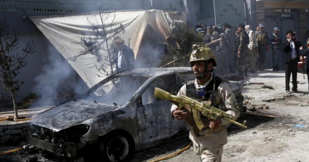 Image: A member of the Afghan security forces arrives after a group of insurgents stormed a building close to an installation used by Afghanistan’s intelligence agency in Kabul on July 7. Gunfire and an explosion were heard as insurgents entered the building, a police official said. Photograph: Omar Sobhani/Reuters