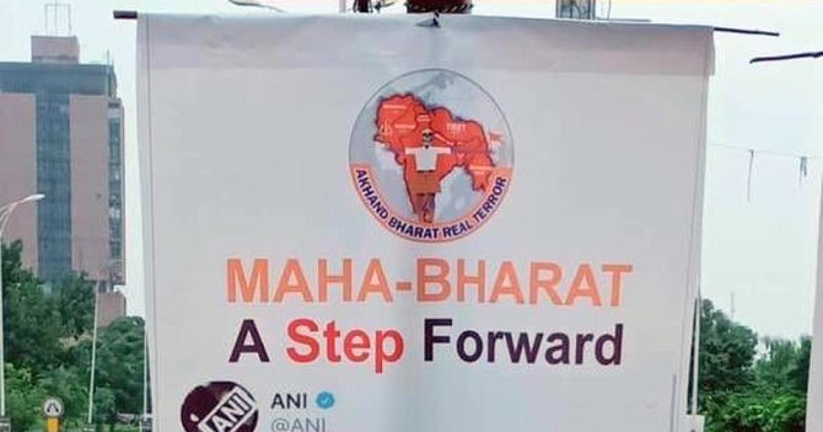 The banners carried a map envisioning Akhand Bharat (undivided India) showing parts of the present-day states of Pakistan, Afghanistan and Bangladesh and warnings about Balochistan.