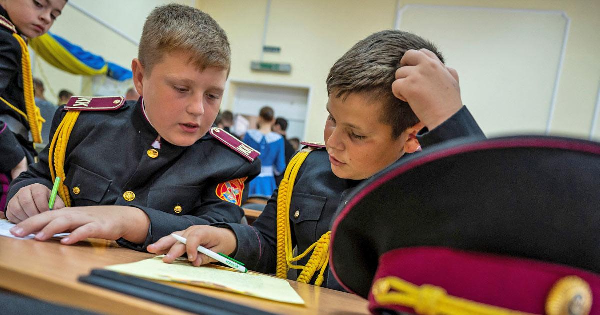 IMAGE: Students in Kyiv write letters to Ukrainian soldiers. Photograph: Viacheslav Ratynskyi/Reuters