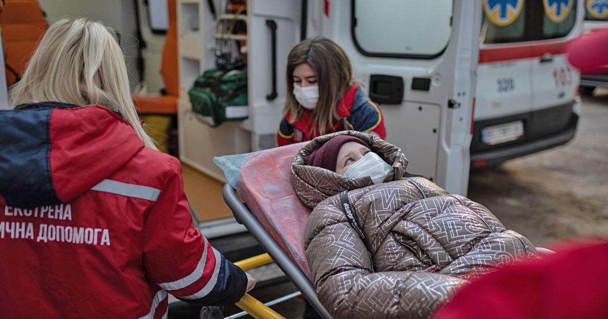 IMAGE: Medics in Lviv, Ukraine, push a child on a stretcher towards an ambulance car that would evacuate her to Poland.