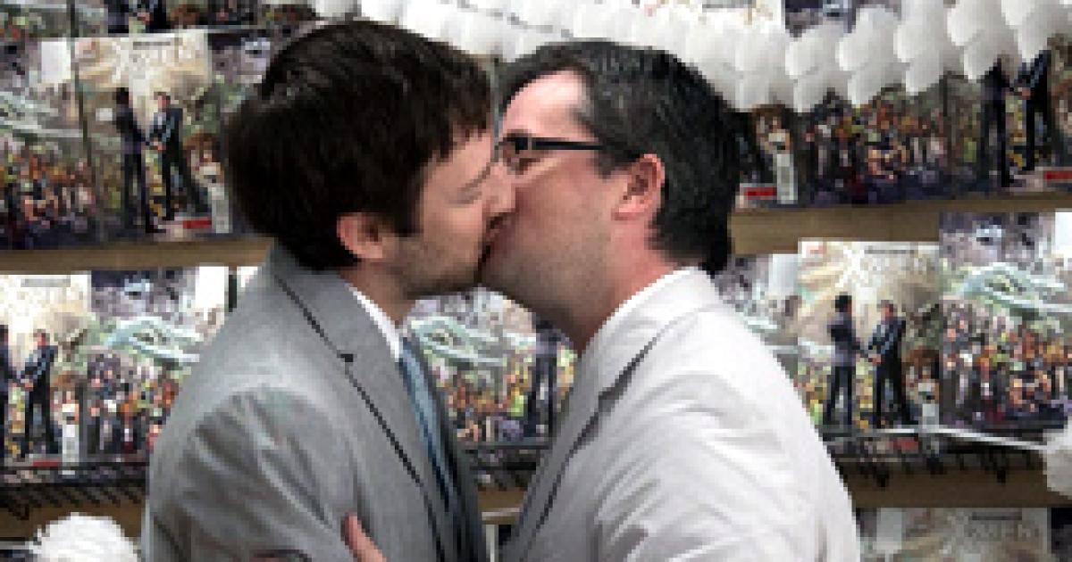 Image: Jason Welker and Scott Everhart kiss after exchanging vows during their wedding ceremony at Manhattan, New York ' Photograph: Adrees Latif/Reuters