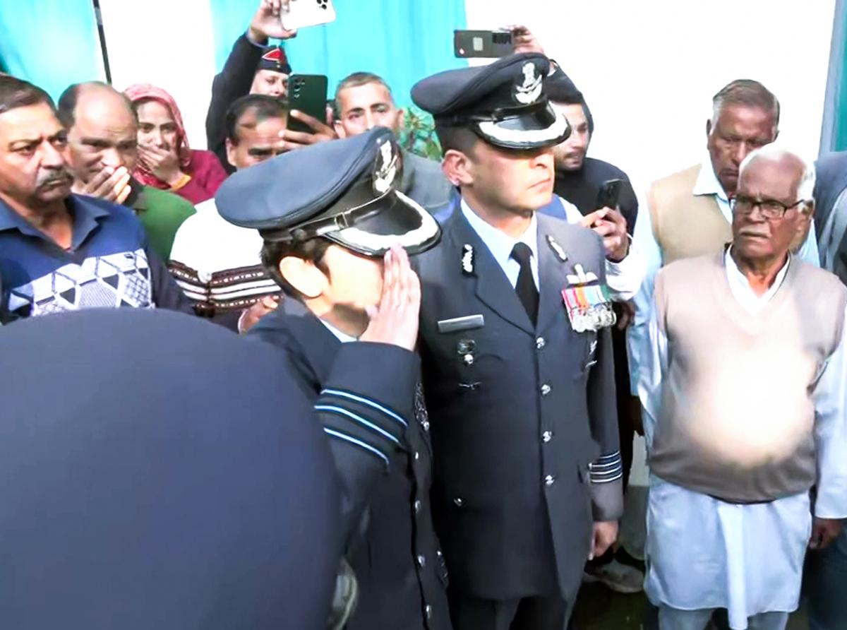 As the convoy reached the village, Syal's parents, his wife, in the IAF uniform, and his six-year-old daughter were seen alighting a vehicle, visibly devastated by the loss.
