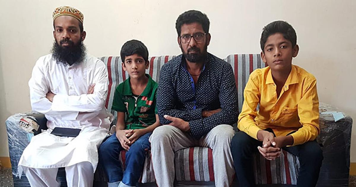 IMAGE: Harun Qadri, who lost his eldest son Haris in police firing last May, with his younger sons on either side of him. Photograph: Jyoti Punwani