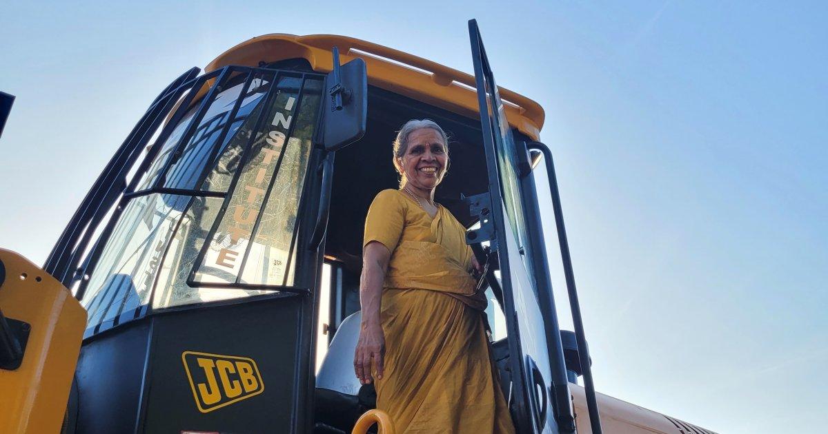 Many women take driver's licenses, but do not drive. But when they see me, a 74-year-old driving a JCB, they think if she can, why can't we?
