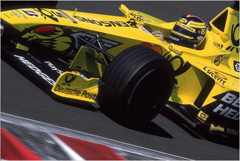 Glory on Wheels Hungarian GP 2000: 13 Aug 2000: Heinz-Harald Frentzen of Germany and Jordan Mugen-Honda in action during the Hungarian Formula One Grand Prix at the Hungaroring, in Budapest, Hungary. Mika Hakkinen beat Michael Schumacher placing him in the lead of the World Championship for the first time in the season. David Coulthard of McLaren finished third behind Schumacher. Clive Mason /Allsport |