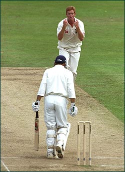 Shaun Pollock of South Africa takes the wicket of Mark Ramprakash of England, 5th test Headingley, Leeds, England, England won the the match to take the the series BACK NEXT Stu Forster /Allsport |