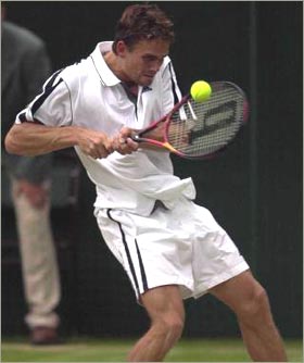 Jan-Michael Gambill's run came to an end when he was beaten by top seed Pete Sampras. Though he did test the defending champion, Gambill eventually went down fighting 6-4 6-7 6-4 6-4.