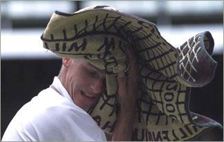 TIME TO GO HOME! A dejected Alexander Popp mops his head as he reflects back on what was, despite a rather abrupt end, a very successful tournament for him. Tipped to be the next Becker, Wimbledon will surely see him return next year.