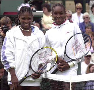 The Williams sisters pose for photographers before their match. The match itself failed to live up to its hyped billing as a nervous and erratic Serena surrendered easily to her older sister.